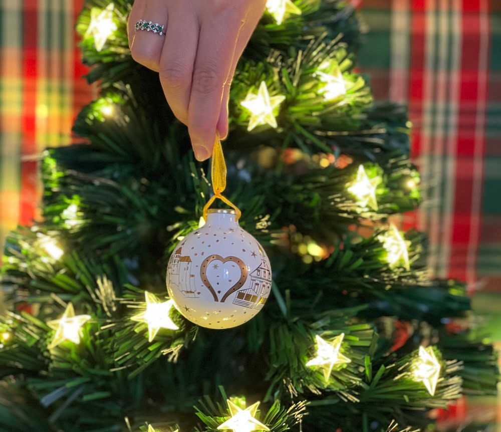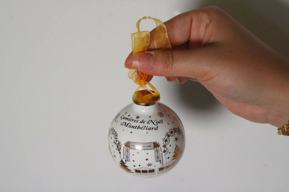 Boule de Noël céramique en émail blanc – Les Lumières de Noël