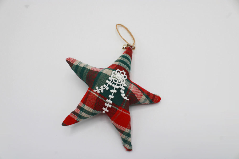Accroché à votre sapin de Noël ou à la clé de votre armoire, une étoile en verquelure lin-coton, lavable à 30°, tissage et confection dans le Pays de Montbéliard.